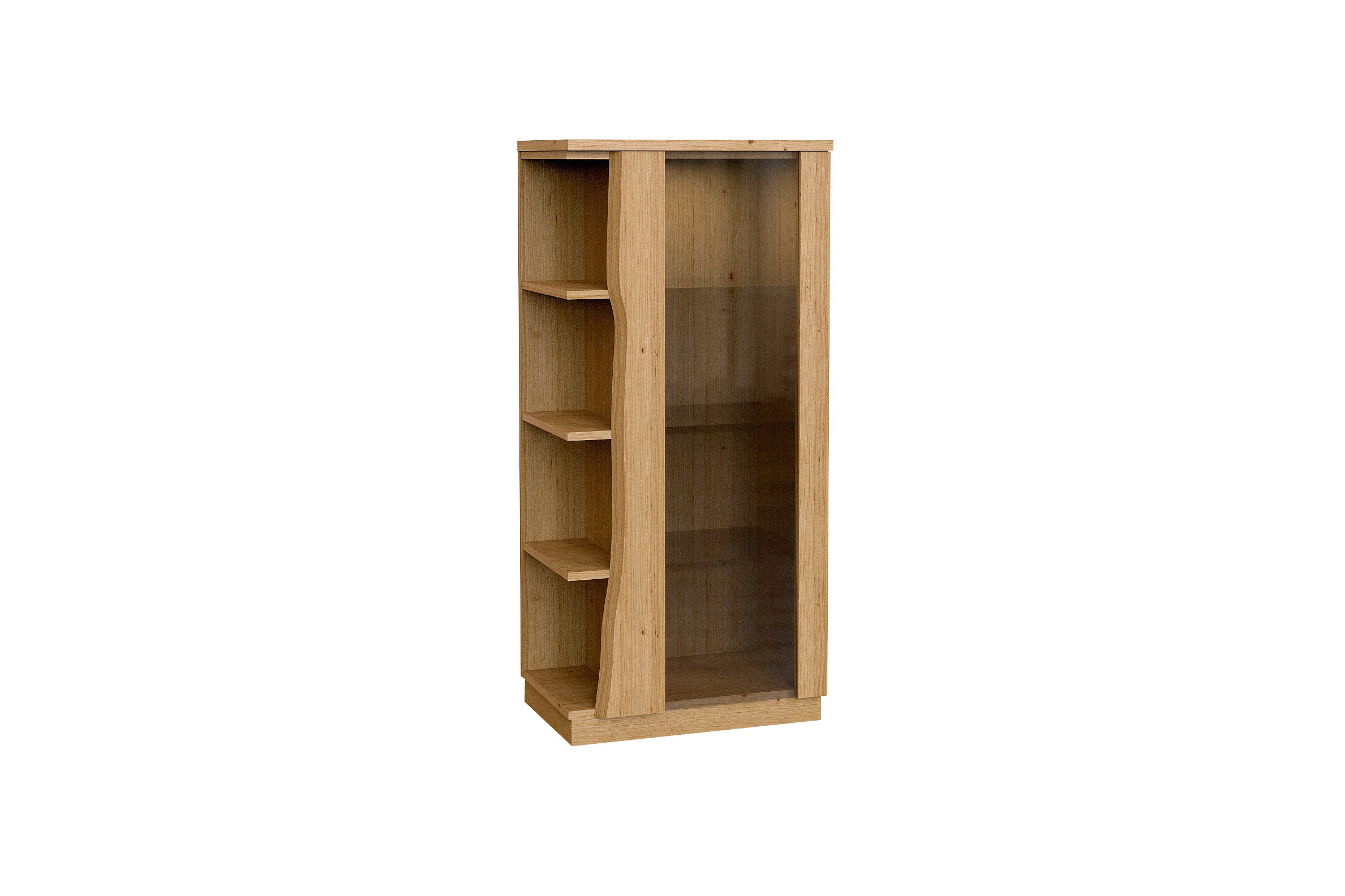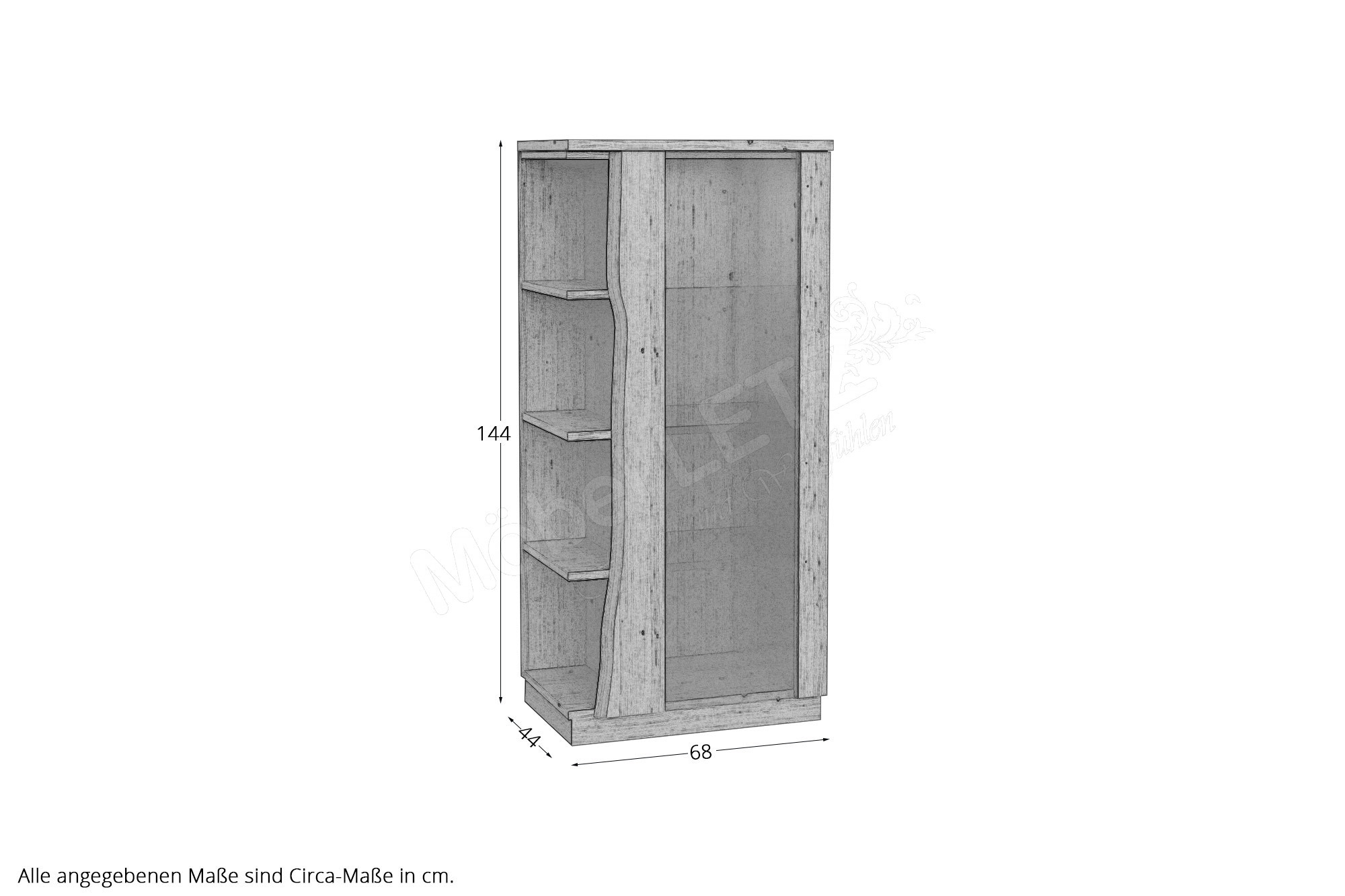 - Vitrine mit 1 Glas-/ Holztür, 3 Holzböden, 3 Glasböden und 4 offenen Fächern