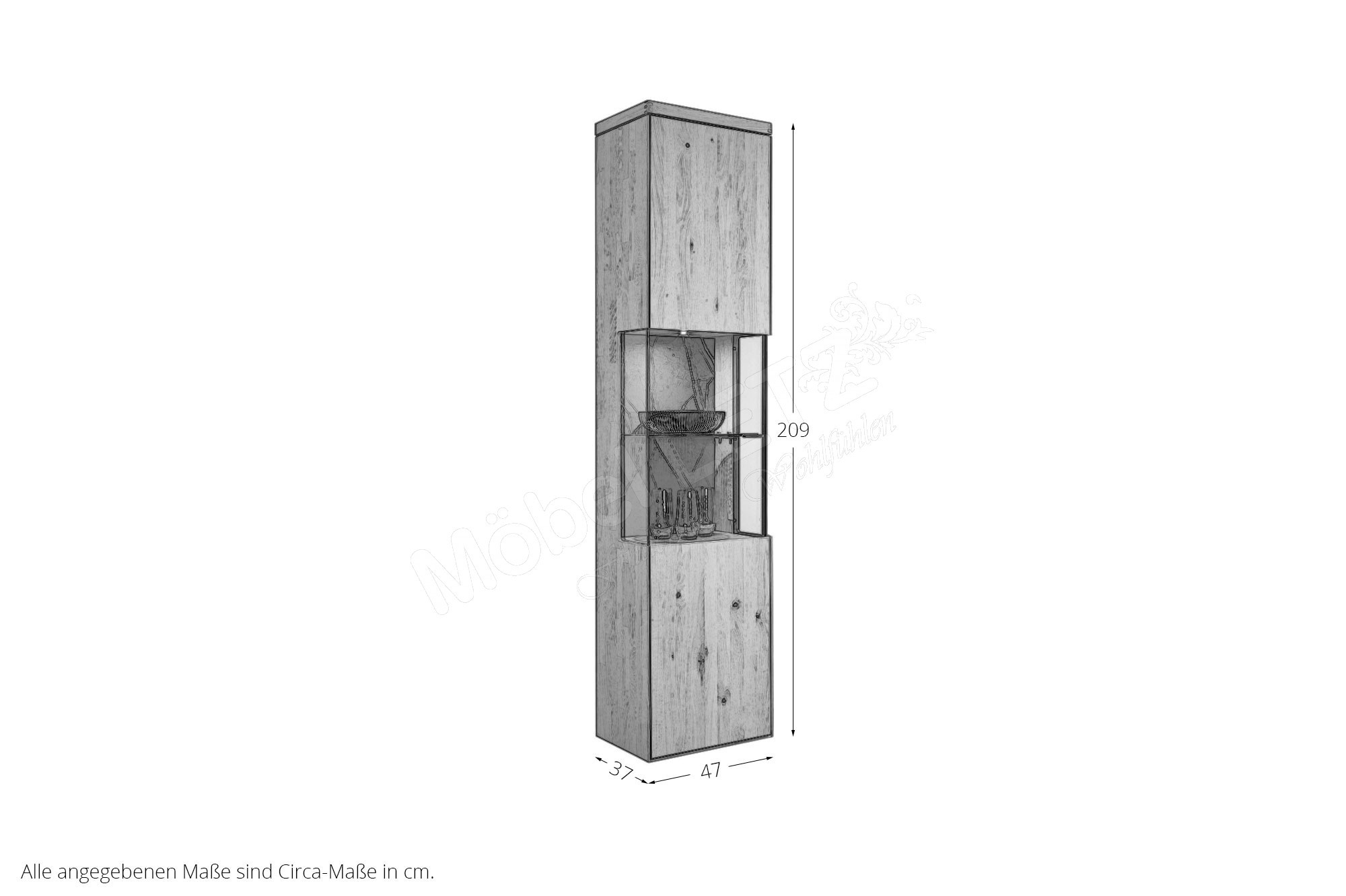 - Vitrine mit 1 Holz-/ Glastür (Linksanschlag) und 5 Böden