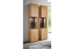 Vitrine von Wöstmann - Modell WM 2520 aus massiver, soft gebürsteter Eiche WM 2520 – perfekte Symbiose von Massivholz und Keramik