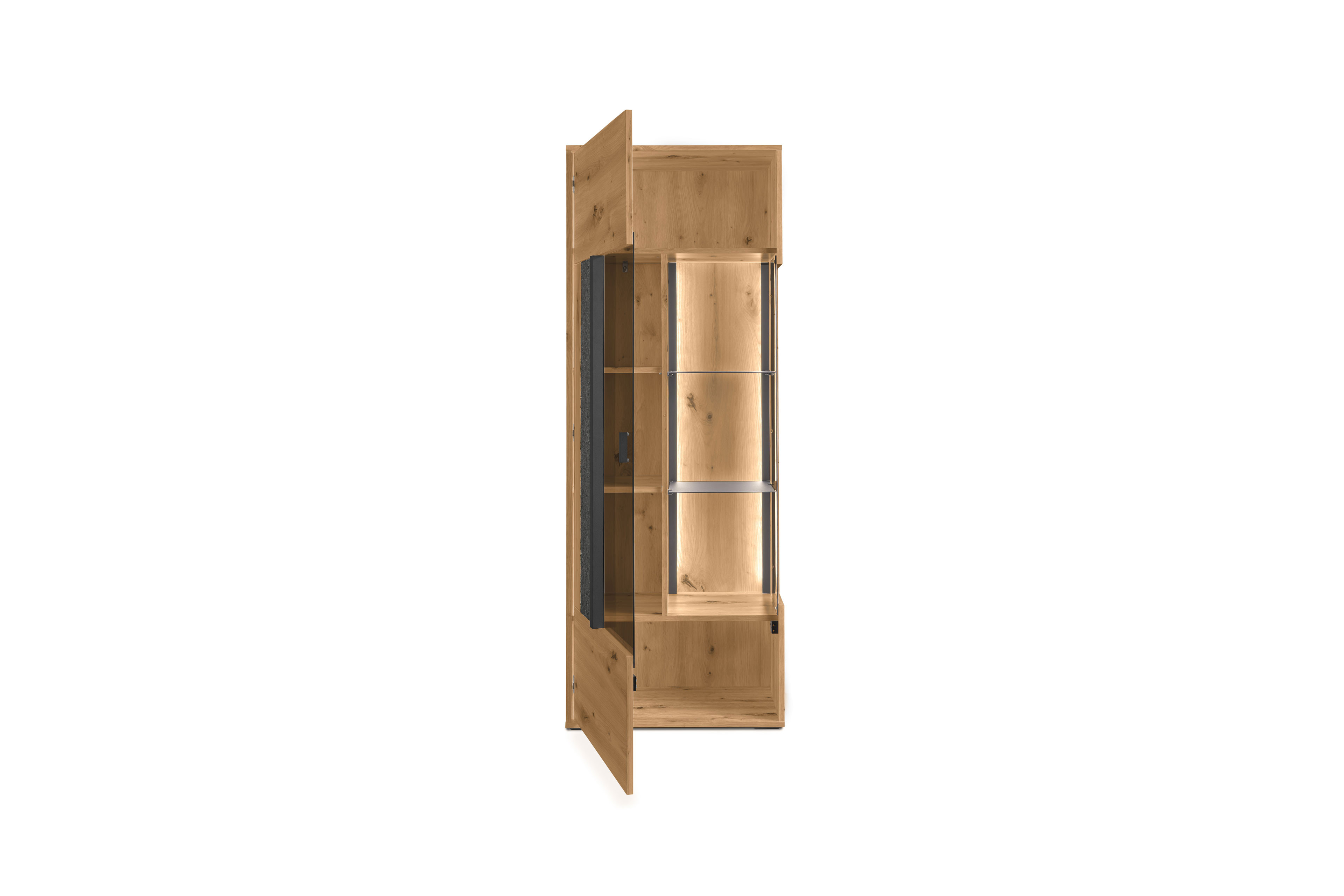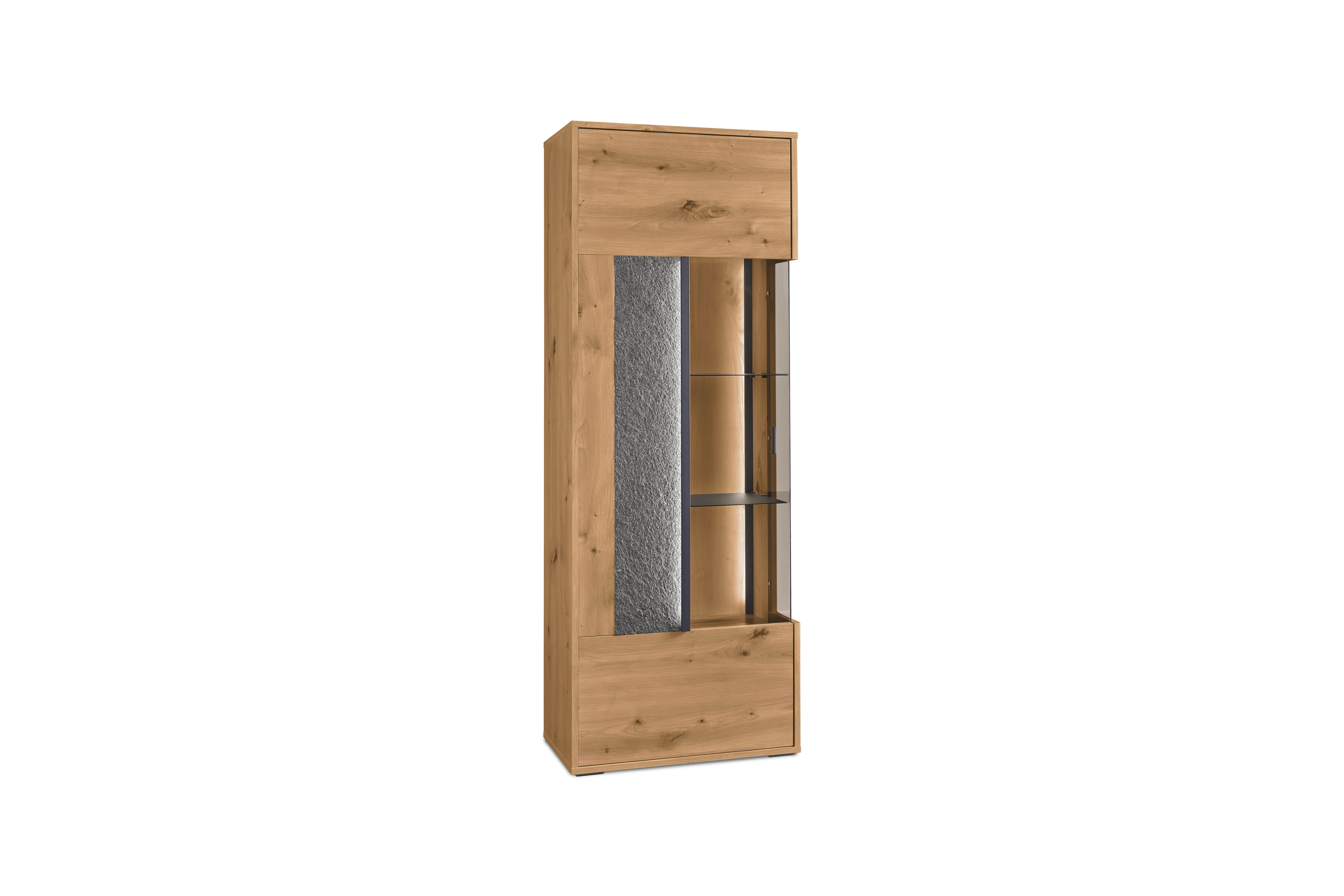 Vitrine von set one by Musterring - Modell Deltona in Eiche mit Zierelement Sandstein Deltona | clevere Wohnideen