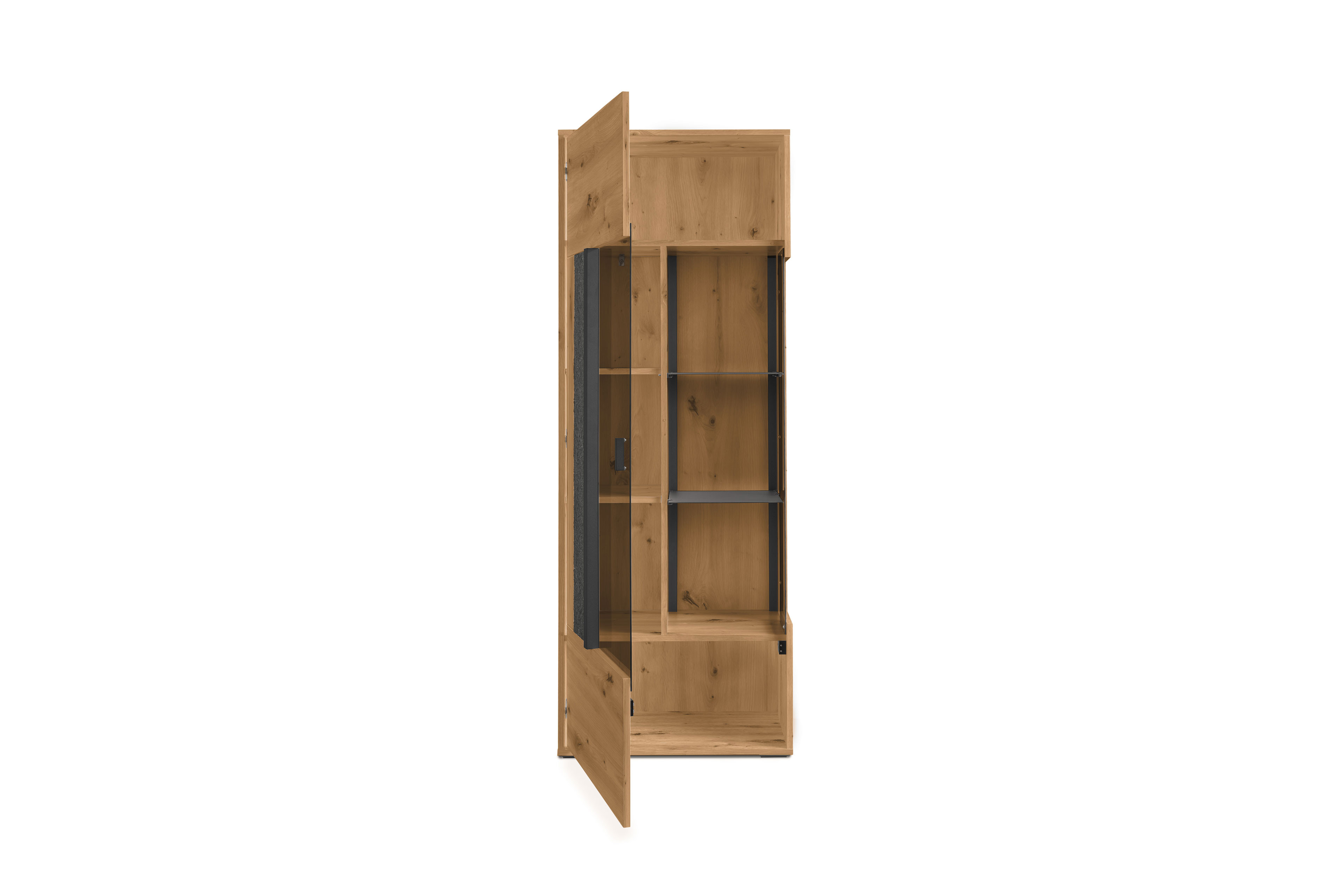 - Vitrine mit 1 Glas-/ Holztür (Linksanschlag), 2 Einlegeböden und 2 Metallböden