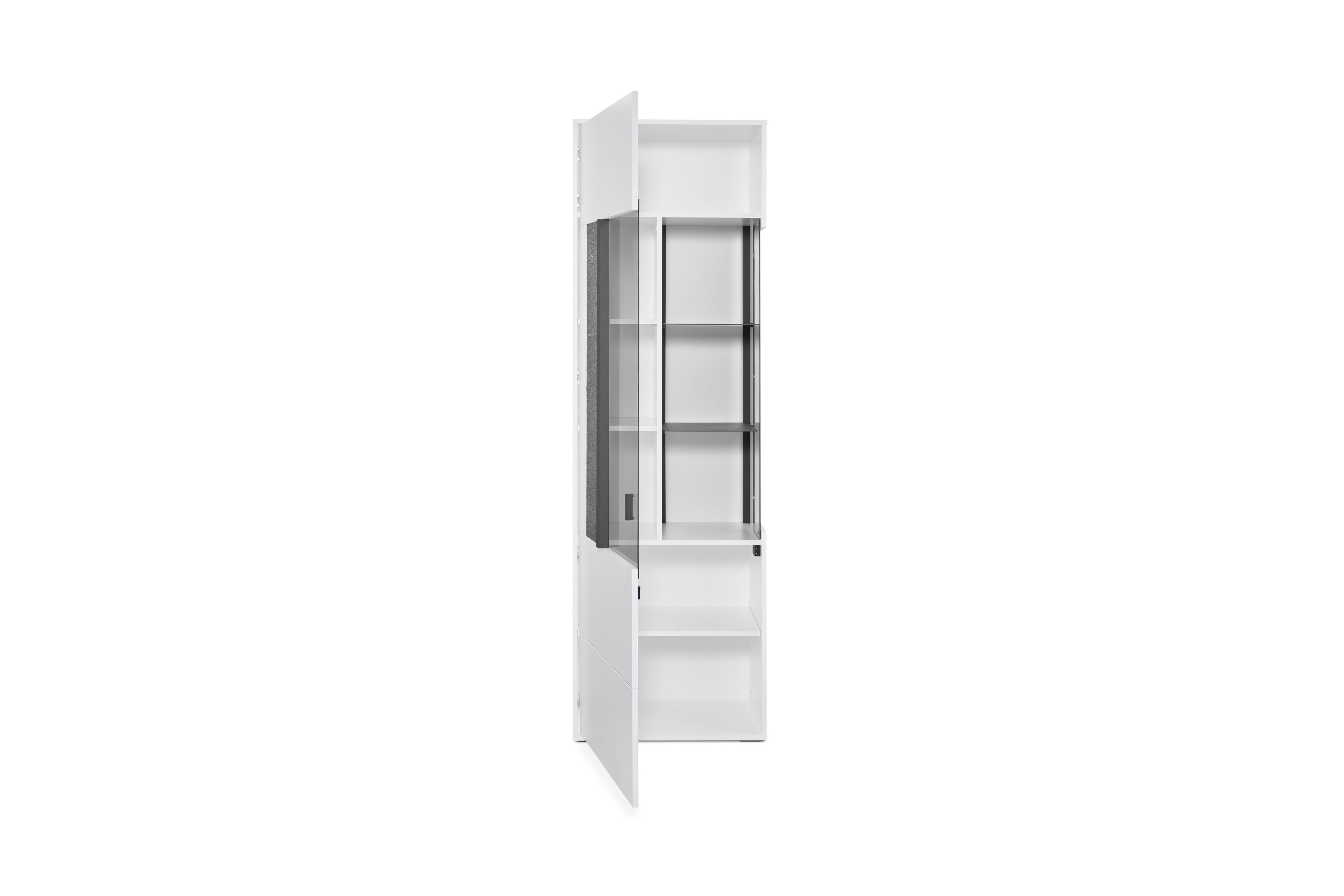 - Vitrine mit 1 Glas-/ Holztür (Linksanschlag), 3 Einlegeböden und 2 Metallböden