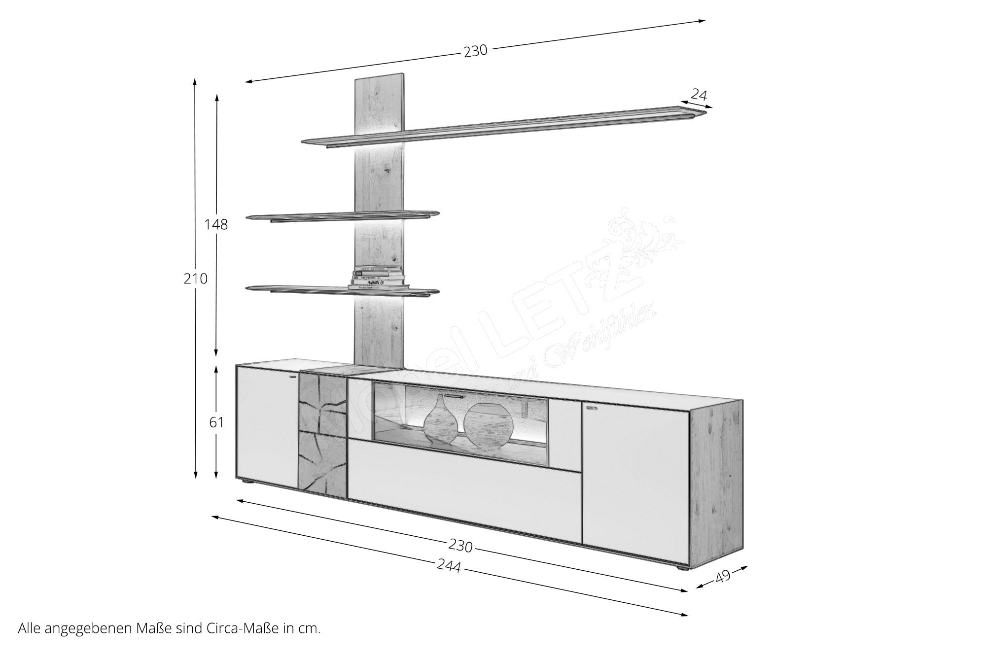 - 1 x 3235 - Lowboard, BHT ca.: 230/61/49 cm