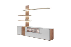 Wohnwand von Hartmann - Modell Caya V80 W Kerneiche gebürstet/ Mattglas weiß inklusive Beleuchtung Belebende Natürlichkeit gepaart mit glänzender Modernität.