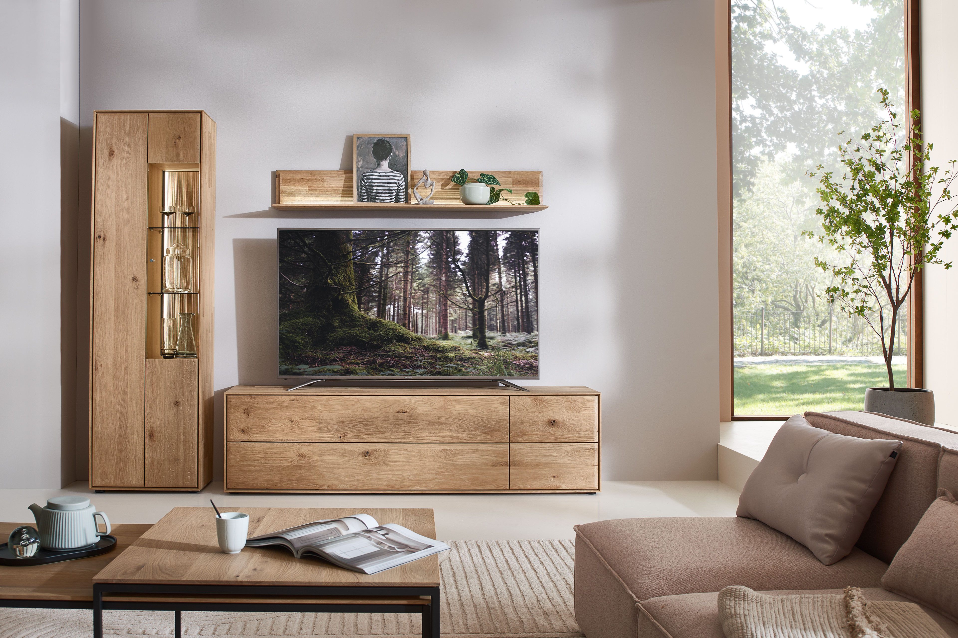Wohnwand V40 von Hartmann - Modell Vala aus massiver Kerneiche natur Vala - echte Möbel, echtes Holz, echte Leidenschaft.
