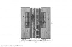 - Vitrine mit 1 Glas-/ Holztür (Rechtsanschlag), 2 Glasböden, 4 Holzböden und 3 Holzeinlegeböden