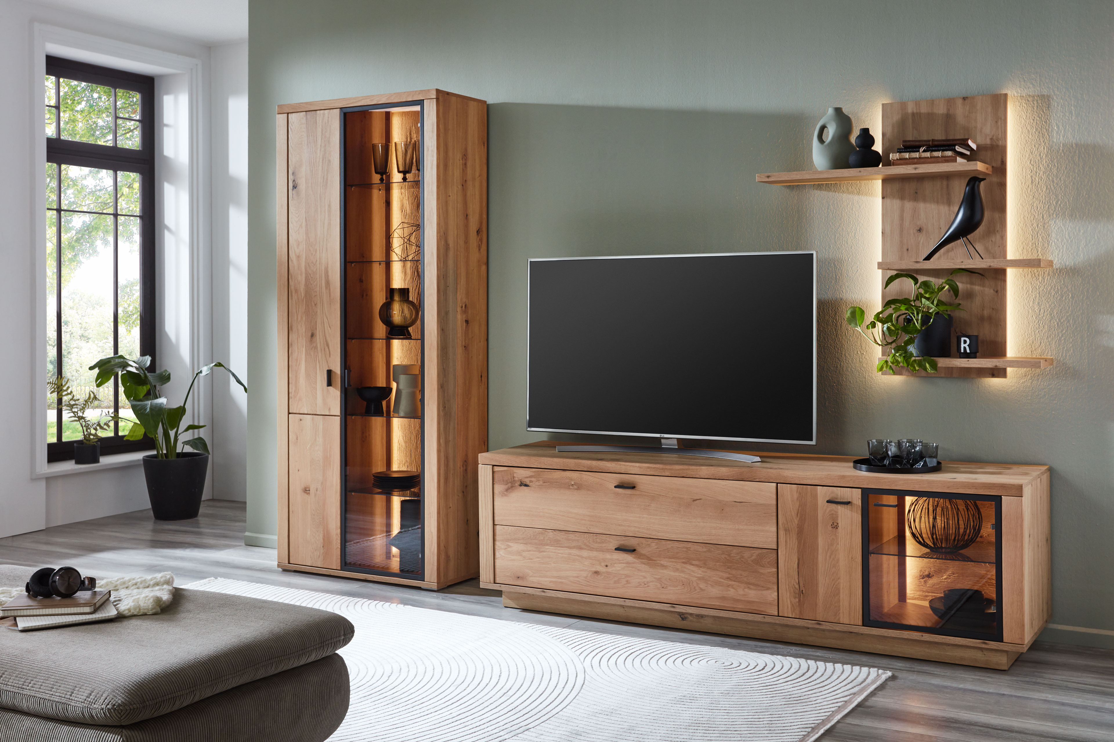 Wohnwand von IDEAL Möbel - Modell Malaga in Eiche Artisan und schwarzem Aluminium IDEAL Möbel - ... einfach schöner wohnen