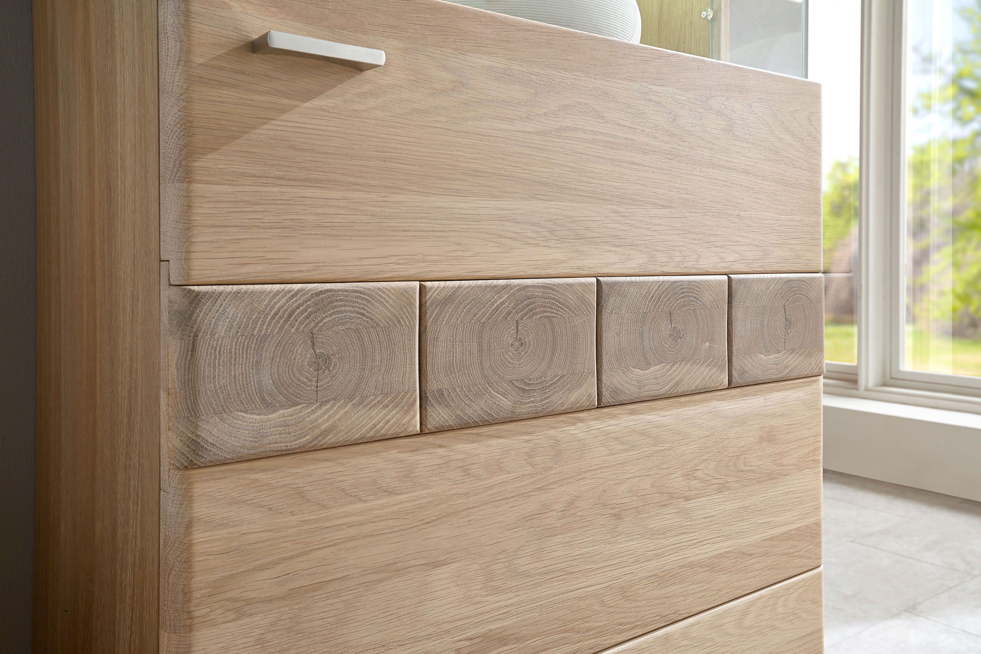 - Frontabsetzungen: Eiche bianco, Hirnholz massiv geölt
