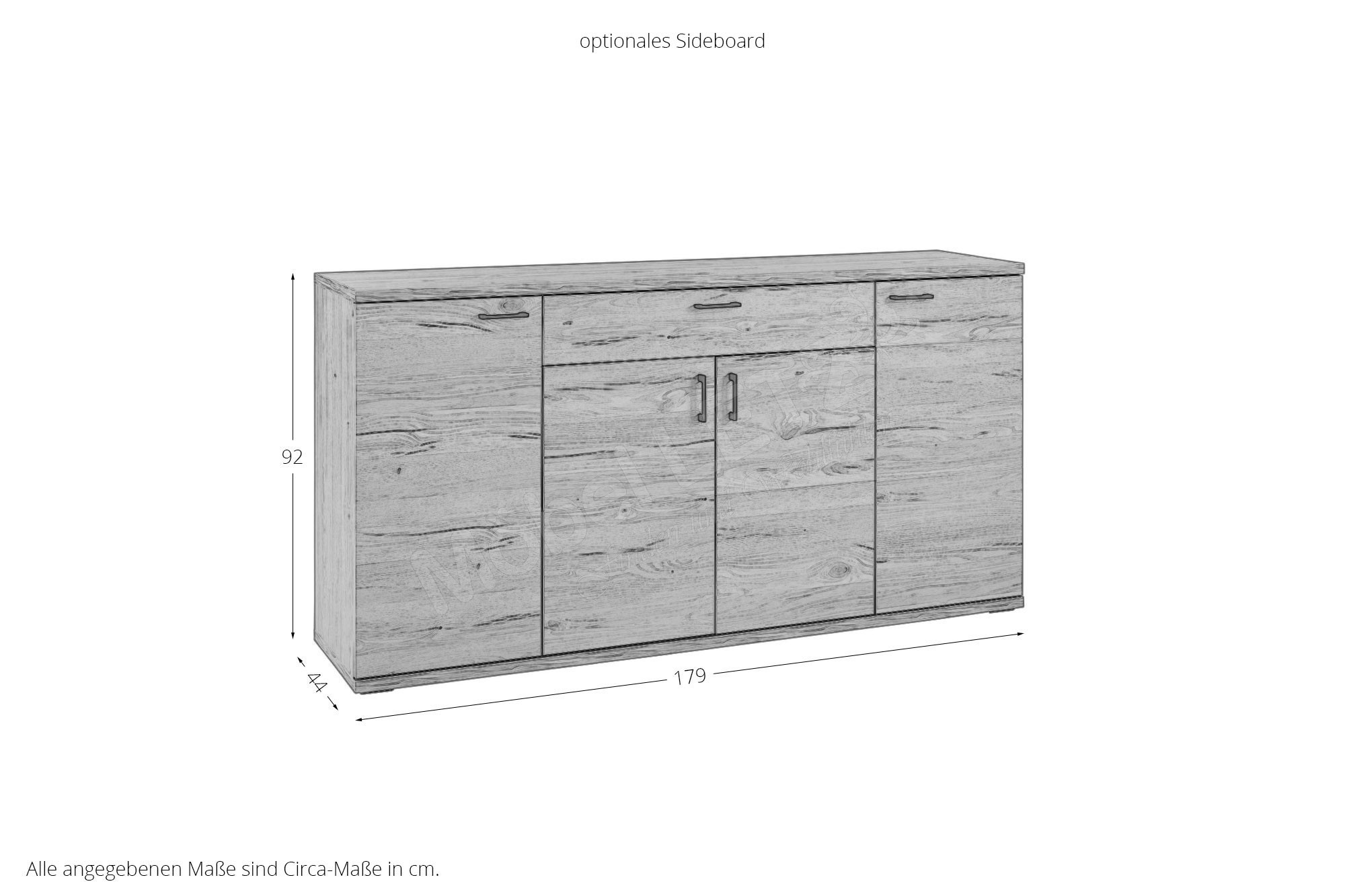 - Korpus/ Front: in Eiche Gustavson, Nachbildung, Melamin
