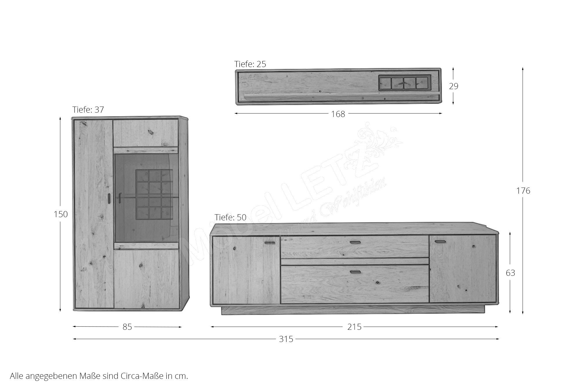 Deshalb kann es bei der Verwendung von Echtholz zu Farb- und Strukturdifferenzen bei den einzelnen Möbelstücken kommen. Bei Echtholz sprechen diese naturbedingten Eigenschaften für die Einzigartigkeit des Holzes. Dies ist kein Grund für eine Reklamation oder Beanstandung.