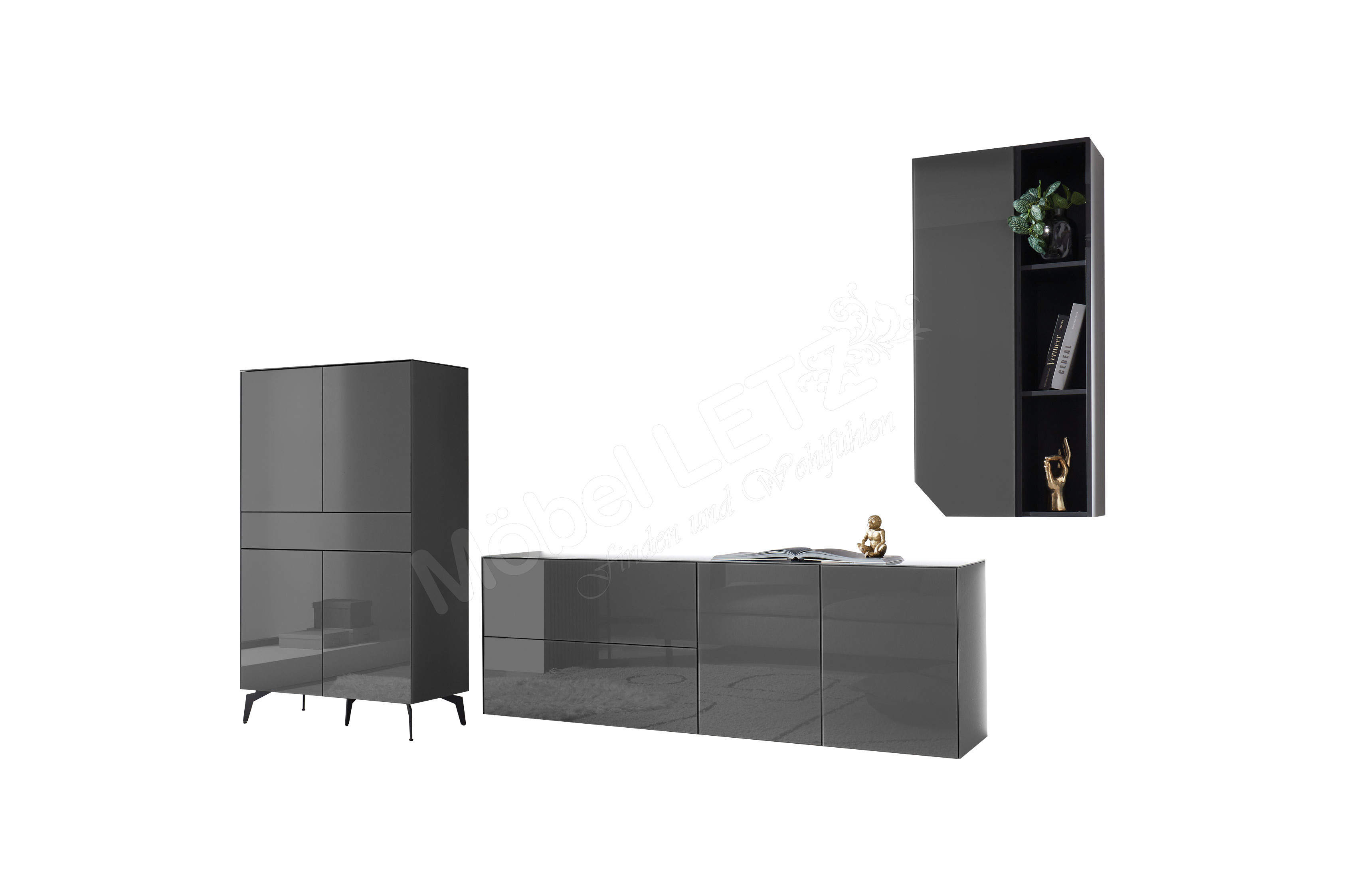Korpus Highboard/ Front Highboard/ Korpus Lowboard/ Front Lowboard/ Front Hängeschrank: Glas, glänzend, anthrazit (Art-Nr. G1015-G1015-D1122-D2571)