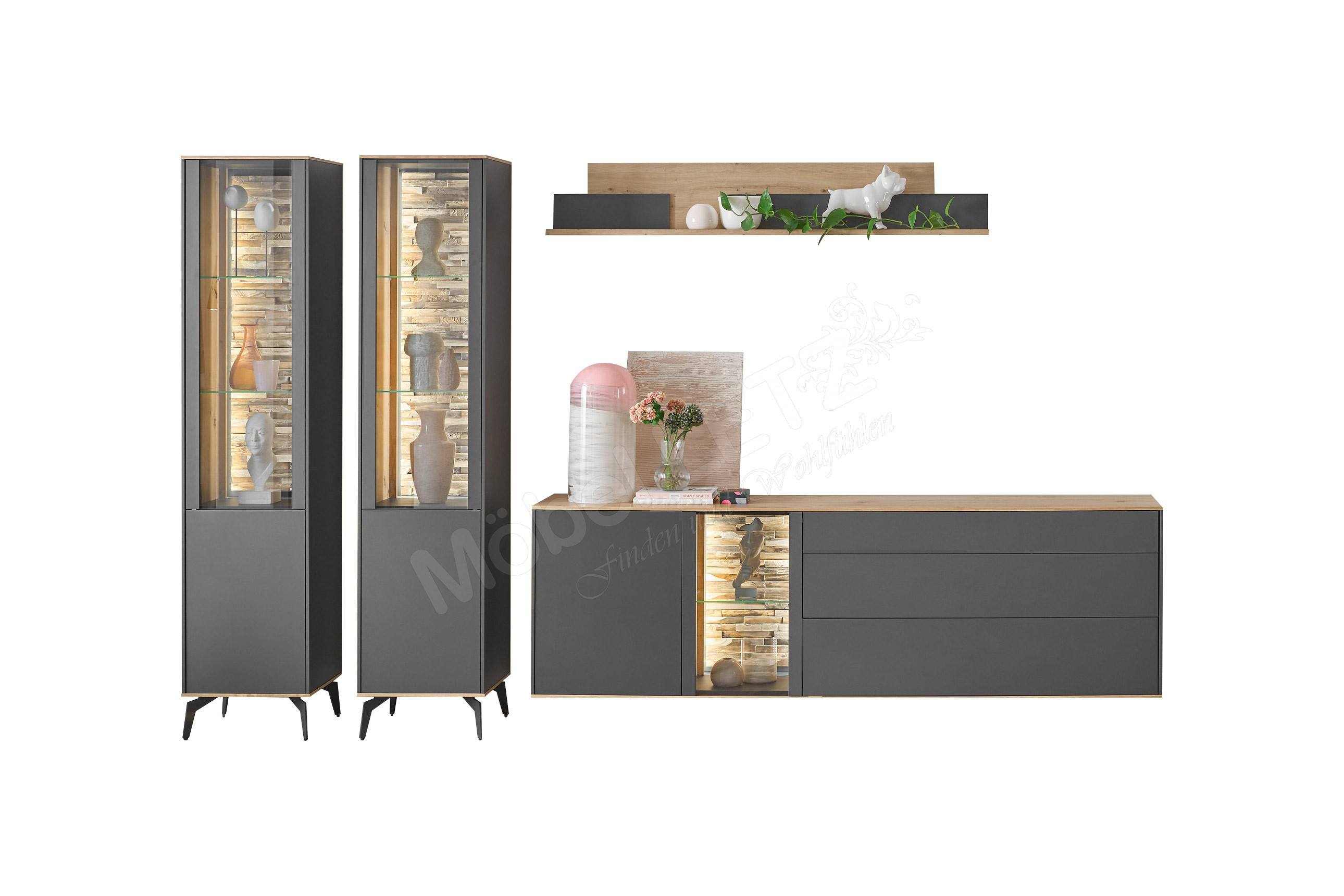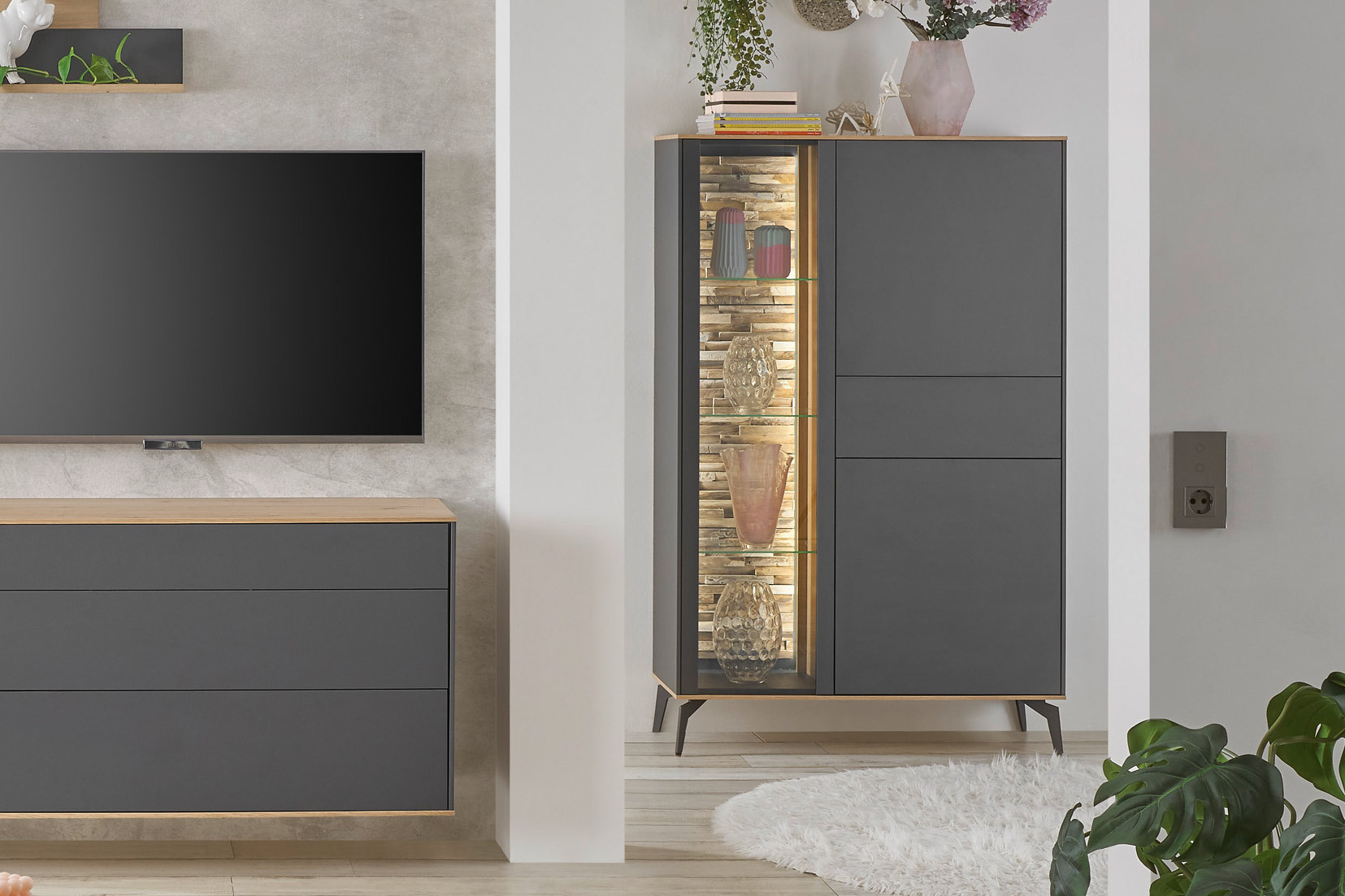 Wohnwand von Mäusbacher - Modell Como in Antrazit/ Asteiche Como - Möbel für jeden Wohnbereich