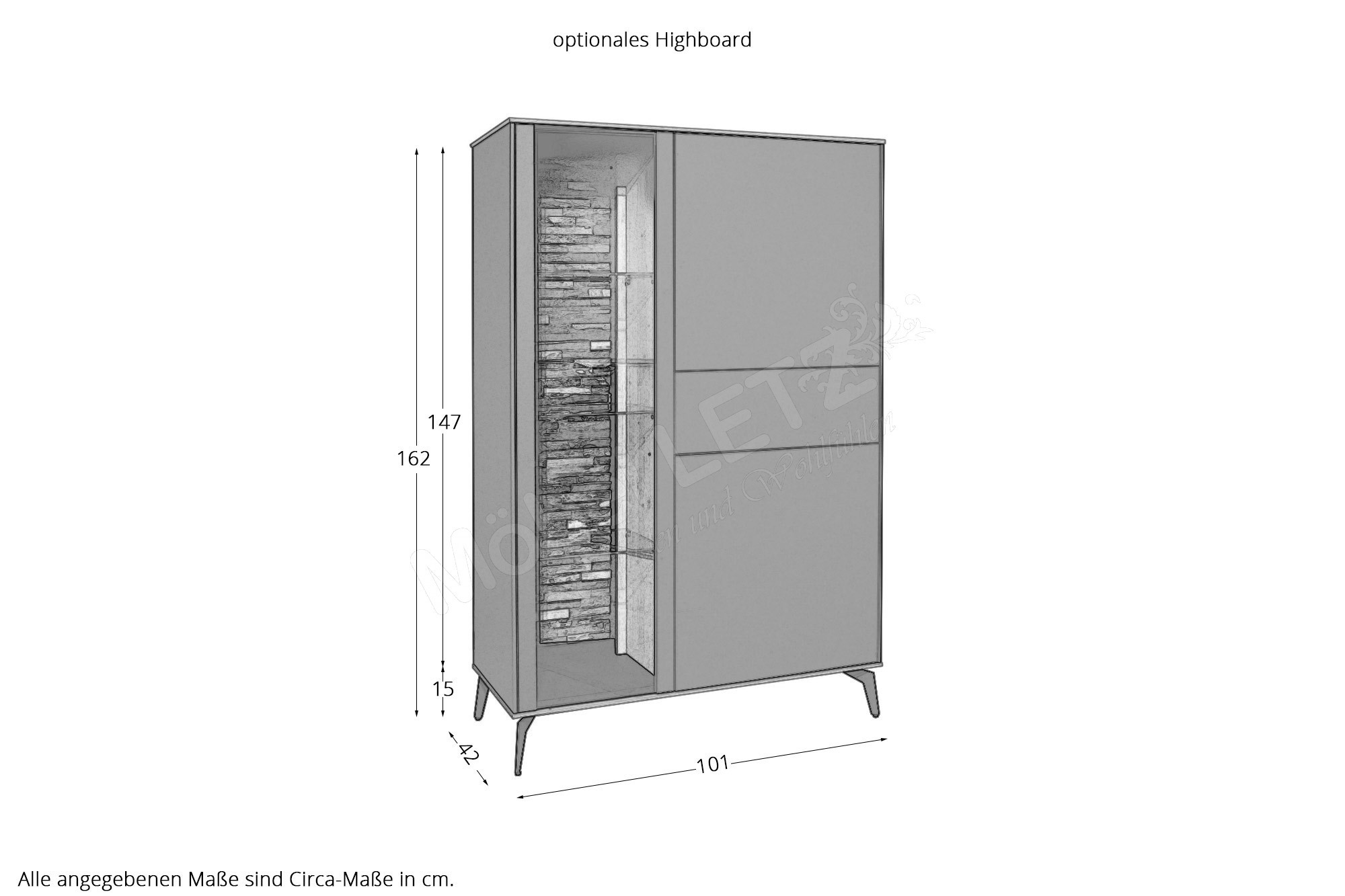 Gesamtmaße des Highboards: BHT ca.: 101/147/42 cm