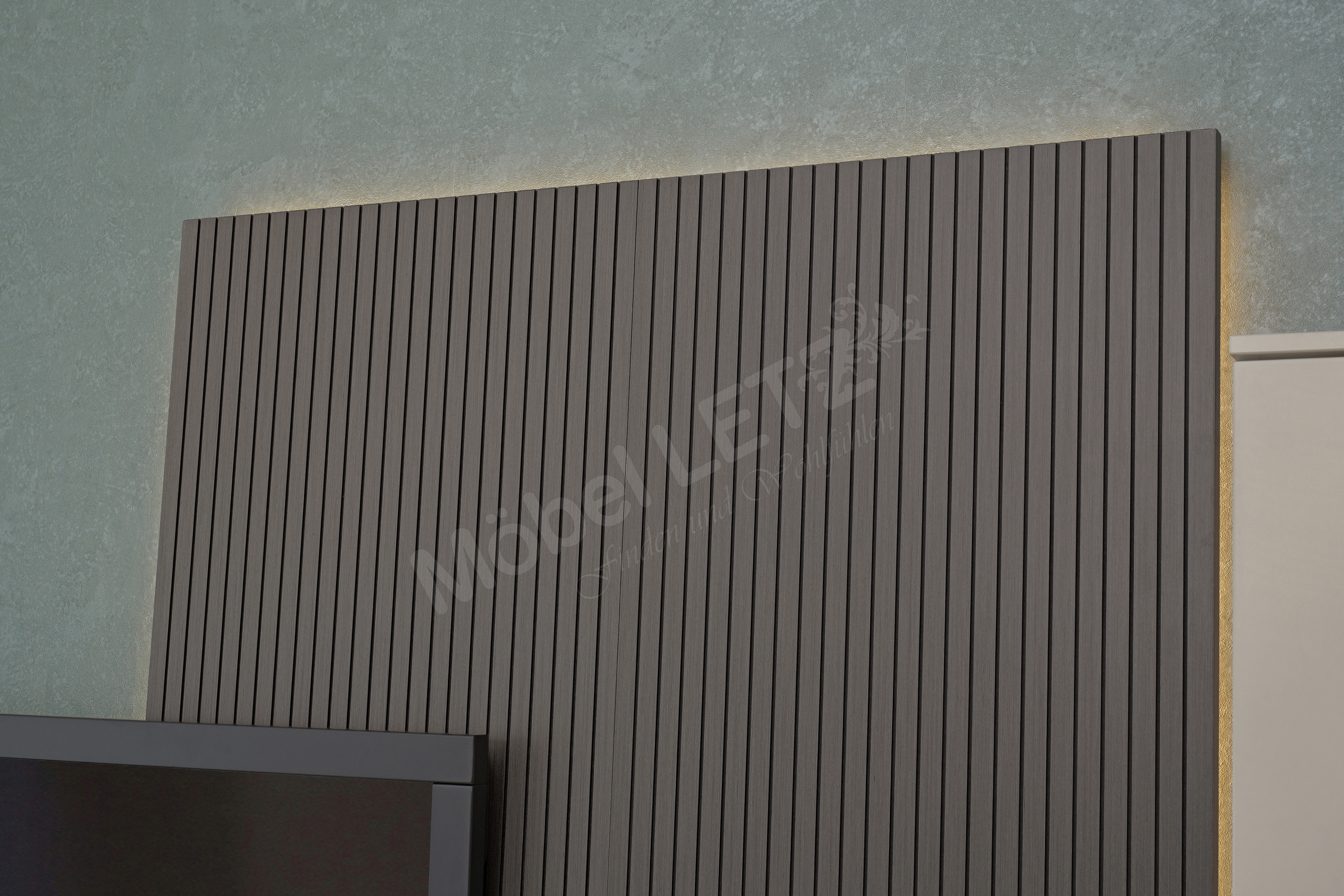 - Paneel/ sichtbare Vitrinenrückwände: Feinschliff Grigio