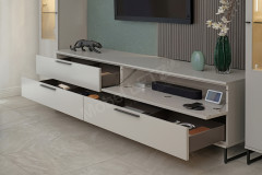 - Lowboard mit 3 Schubkästen und 1 Klappe (oben rechts)