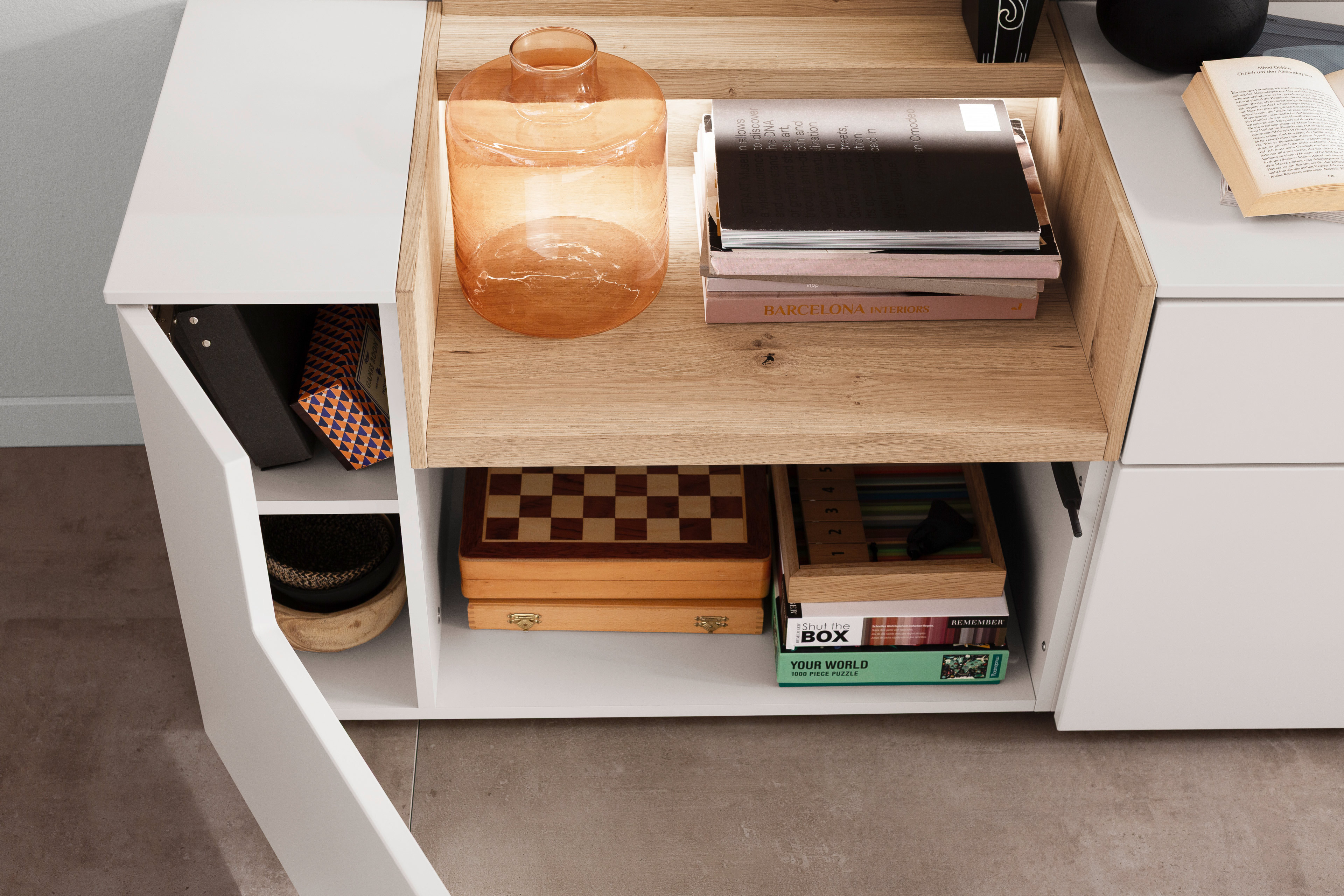 Wohnwand von SCHÖNER WOHNEN - Modell Credenza-living CR01 weiß/ Wildeiche Credenza-living - Möbel für ein gemütliches Zuhause