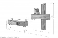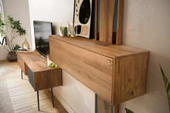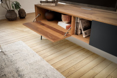 - Lowboard mit 1 Klappe, 1 Holztür und 1 offenen Fach