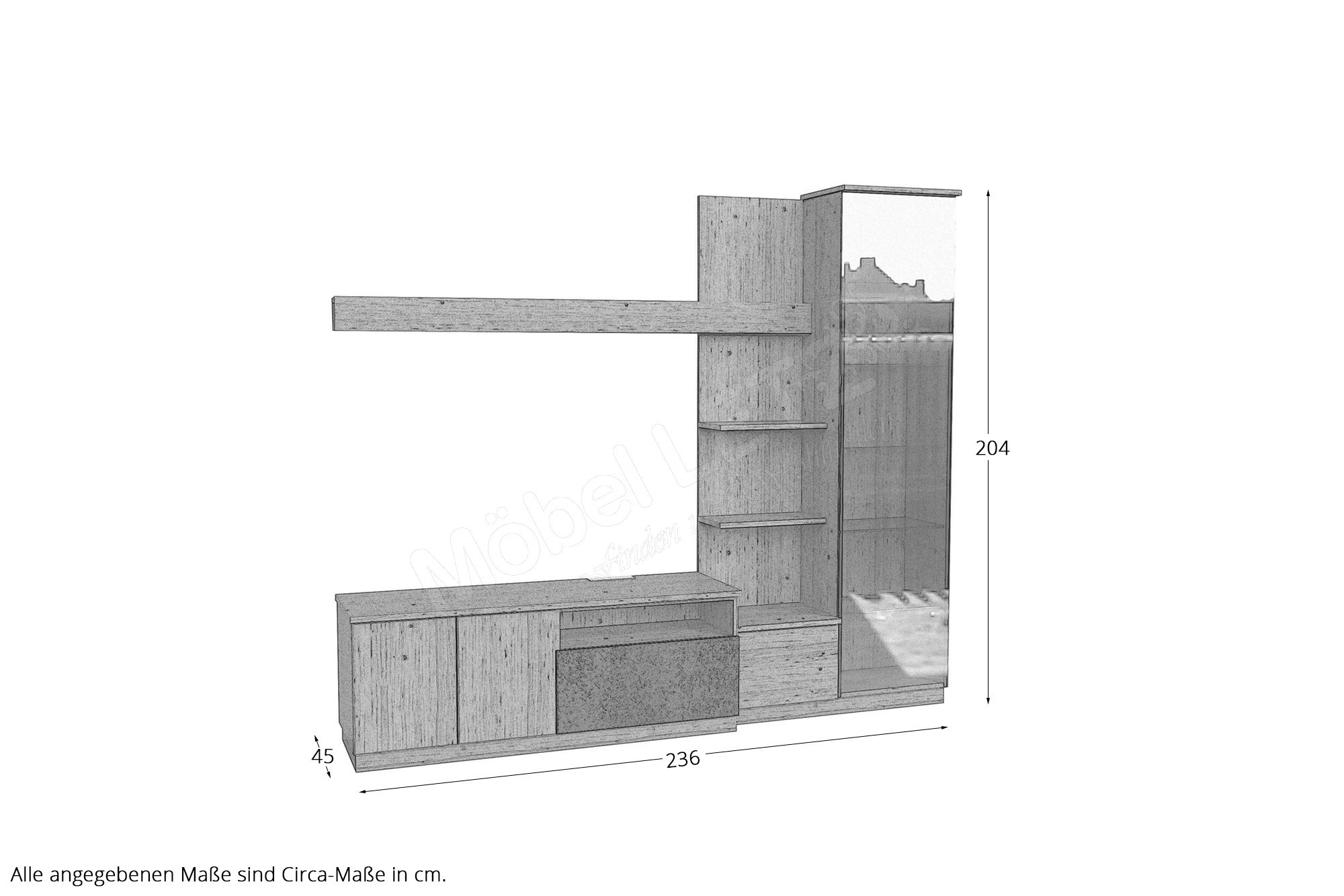 - 1 x TE 31R - Wohnwand, BHT ca.: 236/203,7/45 cm
