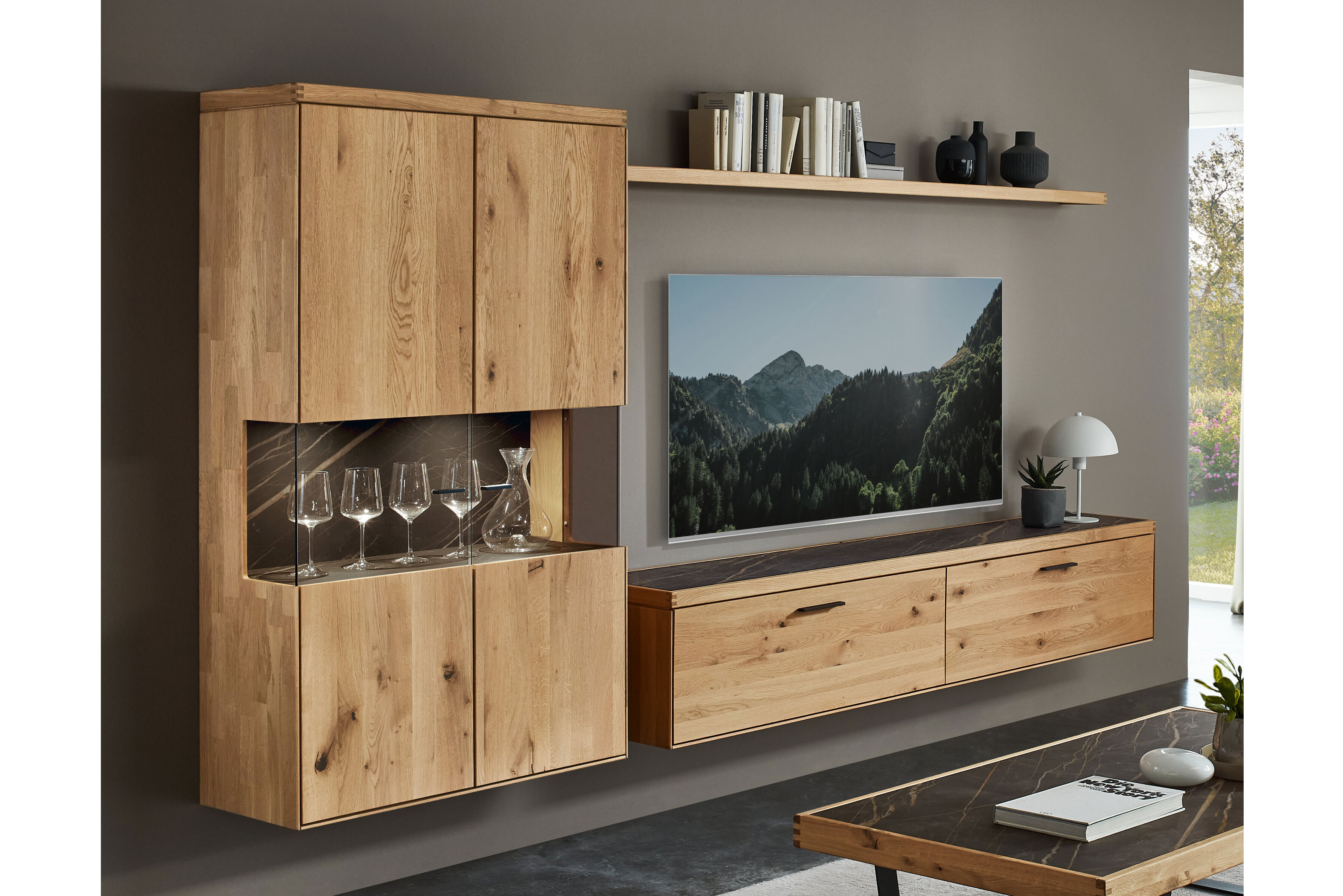 Wohnwand von Wöstmann - Modell WM 2520 hängend, Wildeiche soft gebürstet WM 2520 – perfekte Symbiose von Massivholz und Keramik