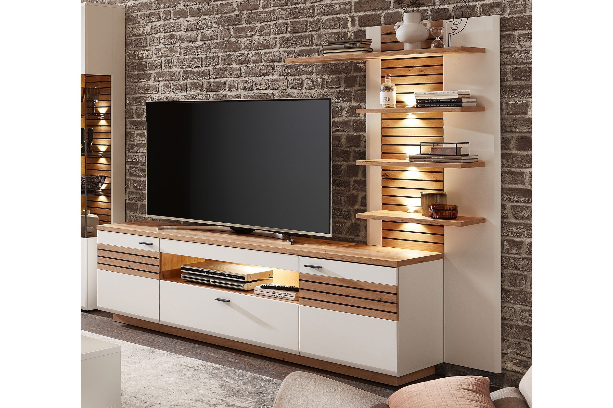 Wohnwand 83 von Wohnconcept - Modell Fresno in Weiß, Artisan Eiche im Dienste schöner und moderner Einrichtung